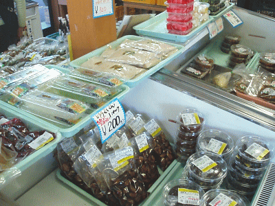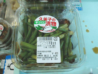 ばとうでは漬物コーナーをチェック! 「ニンニクの芽醤油漬け」なかなかいけます
