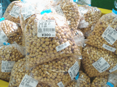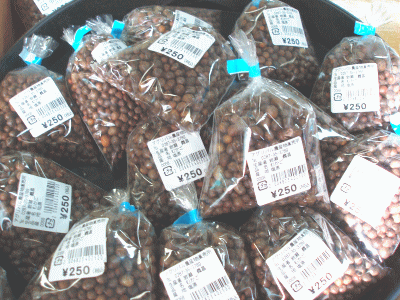 これは「むかご」です。1袋250円 無消毒の「大豆」は、1袋300円