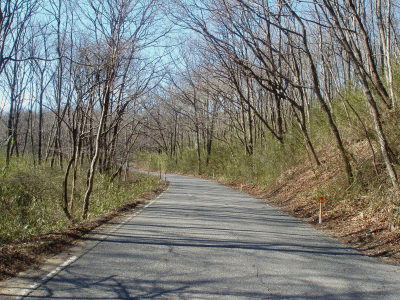 曲がりくねった道が続きます。岩清水ポイントあり |