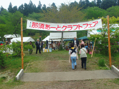 連休明けの5月に記念すべき「第1回那須あーとクラフトフェア」が開催されました。「アート」を「あーと」としたところに、那須高原のソフトクリームに似た響きがあるのだけど、ともかく第1回ということで初ものには我先にと飛びついて、めでたいめでたいと見て回るのは楽しいものです。参加している作家さんのところへは、すでに工房なり店舗なりに足を運んでいたので顔見知りだったのですが、那須高原にはない工房も出展していたので、なかなか興味深いものでした。