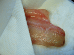 ●キッチンペーパーなどで鮫の切り身の水分を拭き取ってください。