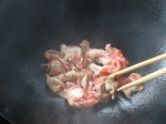 | フライパンにごま油大さじ1をしいて豚肉を炒めます。にんじん、たまねぎ、キャベツ、もやしの準に炒めましょう。塩コショウを忘れずに。 |