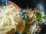 | 同時並行に麺を茹であげます。丼にラーメンスープを入れて麺を浮かべ、野菜炒めあんかけを盛ったらできあがり。 |
