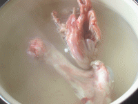 | ●豚骨と鶏がらは下茹でしたら水洗いします。家庭用ですので、同じ鍋の中で1時間ほど煮たらスープができあがります。 |