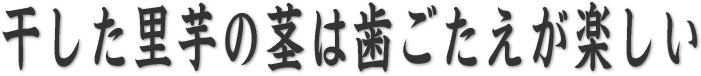 ――となにごともはっきりさせておいたほうがいいです。で、いもがらは汁の具や煮しめなんかに入れるのですが、なによりコキコキした歯ごたえがいいのと、野趣あふれる味わいなのでどうしても食べたくなる食材。那須高原の道の駅や直売所に売っているのでぜひどうぞ。家庭菜園を持っている人は里芋の茎の干し方を参考にしてください。