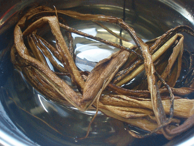 那須高原では「いもがら」や「ずいき」と呼んでいますが、それを干したものだと関東では「干しずいき」、関西では「割菜」といいます。