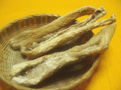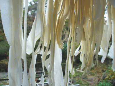 1ヶ月ほど寒風の中で干した凍み大根 |
