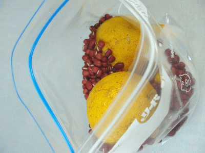 小豆を保存するときは柚子を入れておく いい香りですね。那須高原の年の瀬を感じさせます