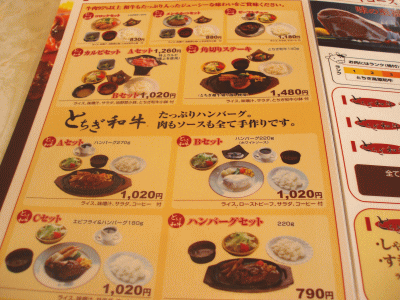 「まつ坂」はお昼のランチタイムだとすぐに満席になります。お昼前に行くのがポイントですが、混雑の原因はその安さと味で、ハンバーグ&コロッケのセットでなんと500円!ですよ。ステーキセットのほうも1000円ということで、大田原市の庶民遺産に指定すべきですね。