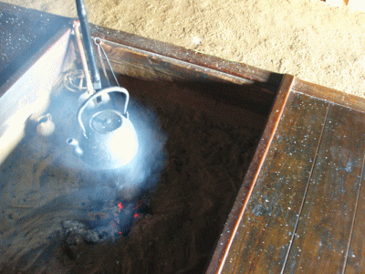 那須高原の伝統的な住まいが学べます 囲炉裏を焚いていました。炭火がパチパチ