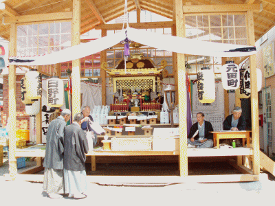 お賽銭を投げると御とそをいただきました 当番町は鷲の彫り物が美しい鍛治町でした