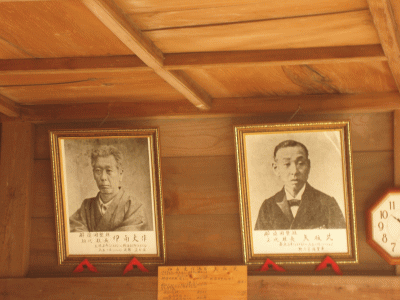 社殿の中に飾ってある開墾の偉人、印南丈作と矢板武 烏森稲荷では「しもつかれ」をお供えする風習があります