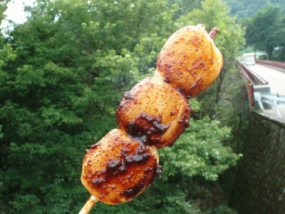売店でだんごを購入。トリカブトも売ってました 雪割橋から先は由井ケ原という牧場地帯