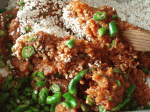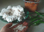 味噌の中に青唐辛子と麹を混ぜ合わせます。