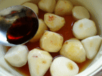 軽く鍋を振ってほどよく煮たら、醤油1/2をたらして、そのまま鍋の中で寝かせてます。