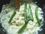いんげんを5〜6本まとめて小麦粉と絡ませます。