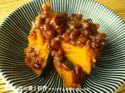 那須高原のいとこ煮は「甘じょっぱく」が基本です。飴色のトロトロに煮たほっくりかぼちゃに、つぶつぶあんこを絡ませます。いとこ煮のときは玉砂糖を使ってください。黒糖の和菓子を食べているような味わいに仕上がりますよ。