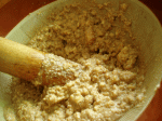 すり鉢で豆腐を崩します
