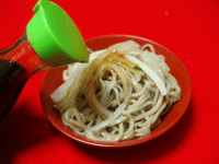 温かいそばのときは汁の中へ。冷たいそばのときは水洗いします。