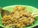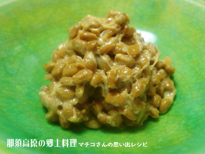 全国的に納豆の中に味噌を加えるのは那須高原だけかもしれませんね。醤油味と違って、こってり感が加わってご飯を美味しくいただけます。ちょっと応用して、すり鉢で納豆を細かく砕いて、そこに味噌を入れて混ぜ合わせれば「納豆味噌ペースト」になります。お餅や海苔に巻いて食べてもなかなかいけますよ。