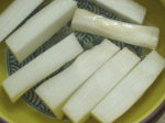 ●酢を入れたお湯で茹でるのは、アク止めのためです。フレッシュなまま食べたいときは酢水に浸けましょう。