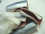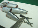 ●さんまの腹を裂いたら内臓を取りましょう。頭と尻尾を切ります。