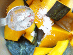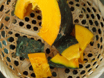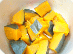 | かぼちゃがほっくりとしたらできあがり。熱いうちに食べてみて。 |