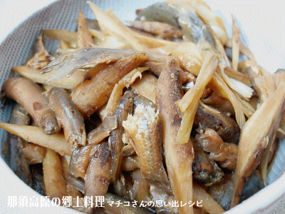 | ごぼうとねぎを入れて、弱火で30分ほど煮ます。汁気がなくなってきたらできあがり。 |