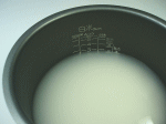 炊飯器の釜に入れた米ときびは、30分ぐらい水に浸しておきましょう。