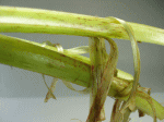 ●ふきの太いほうから包丁をあてたりしながら皮をむく。スーとむけます。