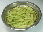 灰汁抜きしたふきは3cmぐらいに切ります。