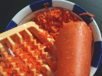 炒めご飯は、馬頭の旧家で親戚やお客さんが来たときに振舞われたので“お客様料理”と呼んだようです。確かに、冷や飯を使って手っ取り早く料理できるので便利なレシピですね。塩鮭の塩味と人参の甘味だけの味付けは思いのほか美味しくいただけますよ。
