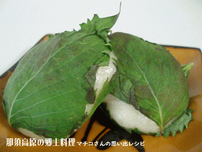 | 夏に食べるお餅は青じそをサンド |